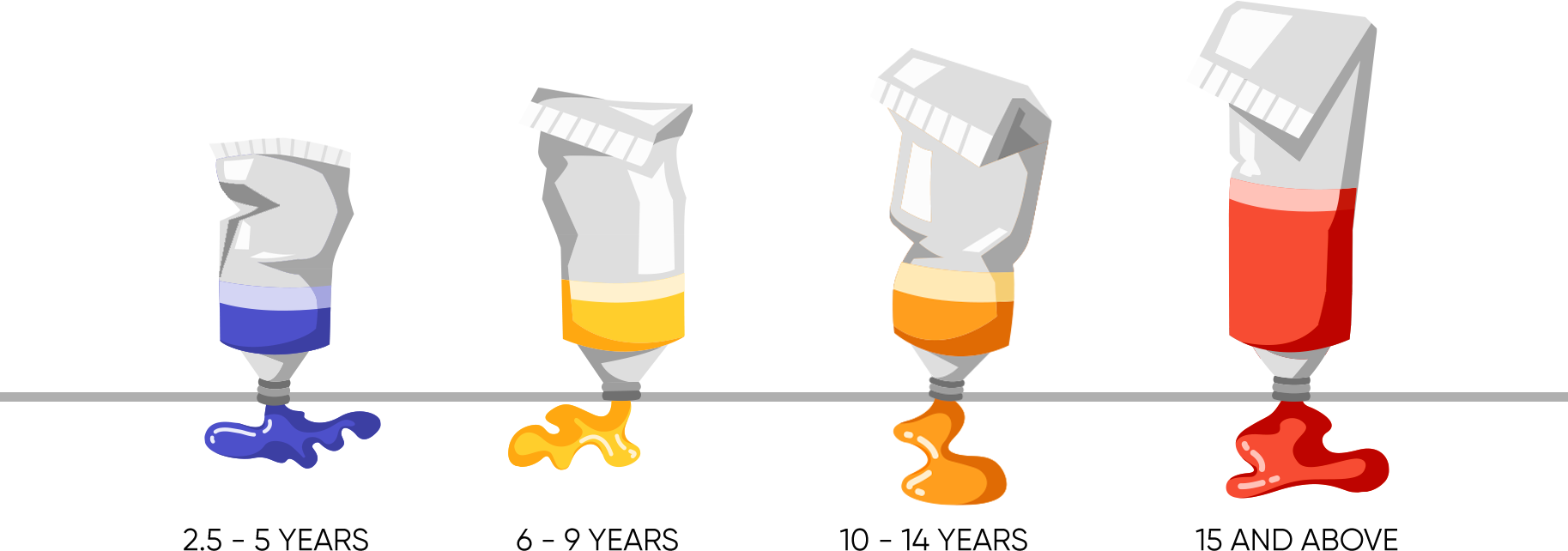 The course content below is only an indicator of the activities but not limited. Our dynamic educators and artists bring new concepts and creative ideas constantly to keep our children up the curve in visual arts scene.